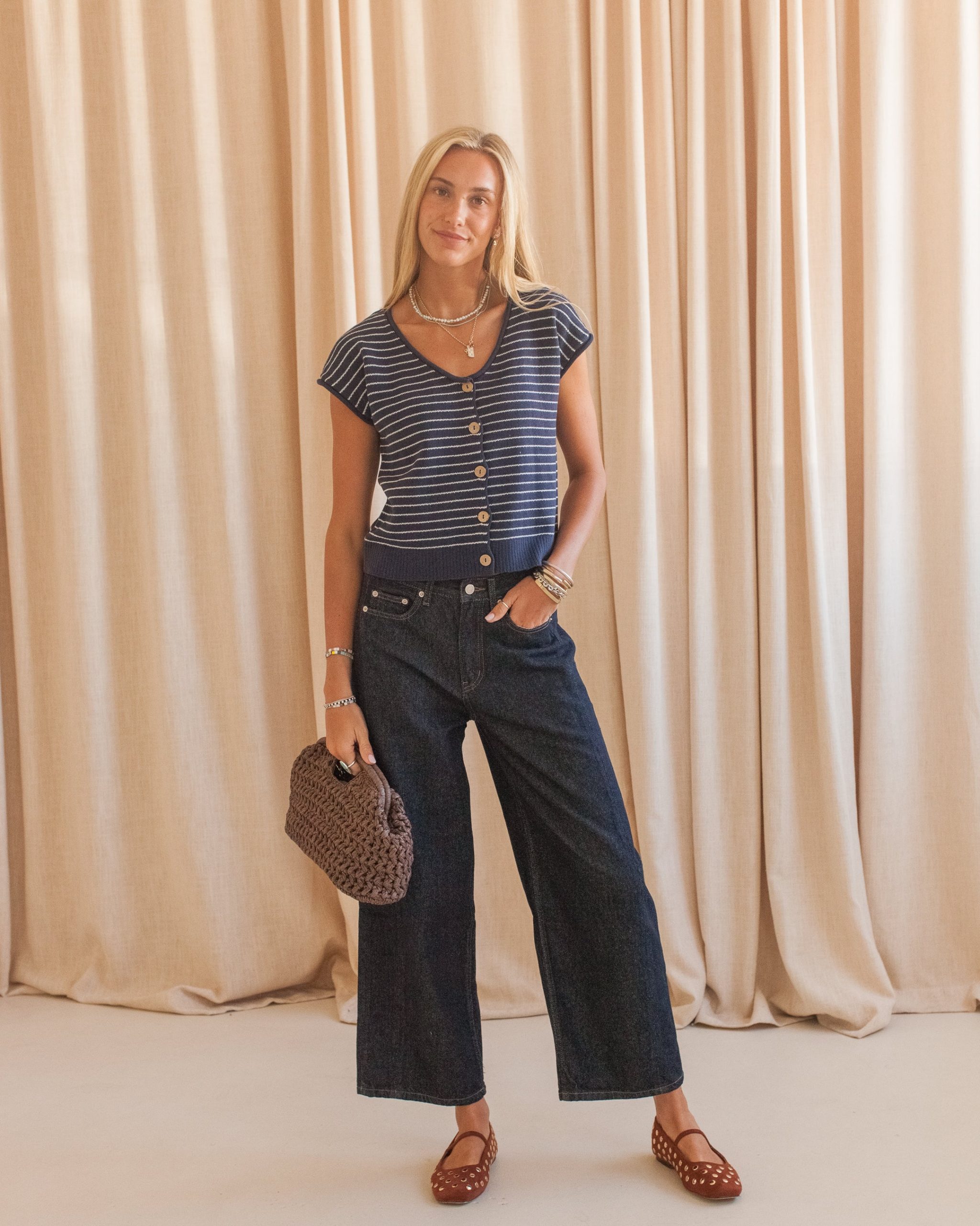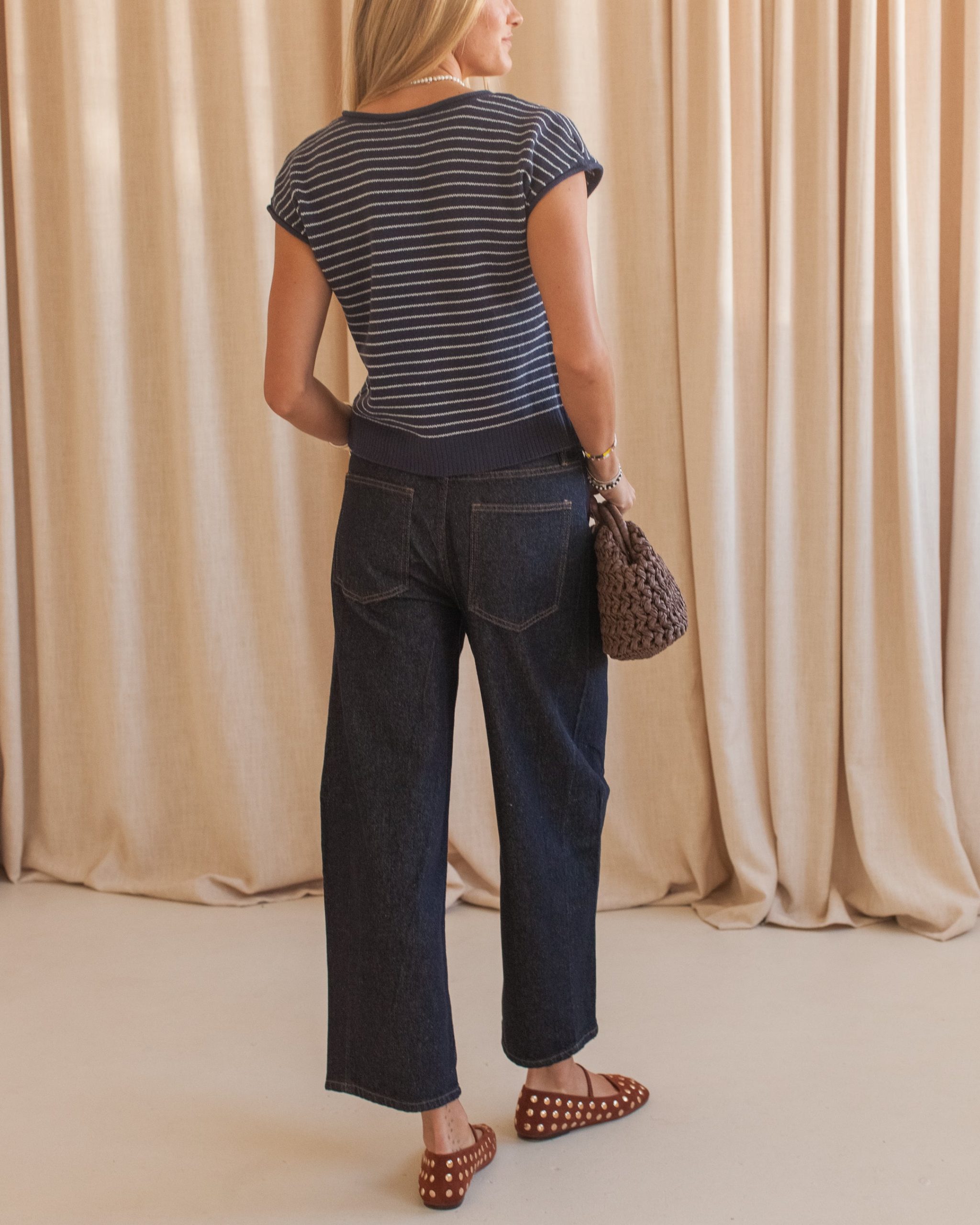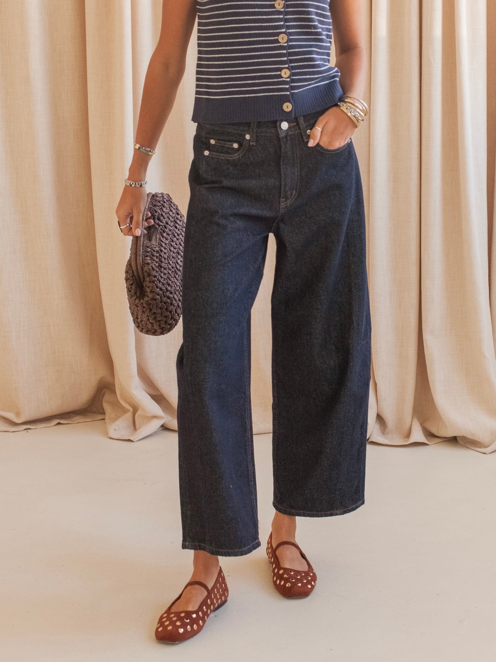 Barrel leg dark wash jeans. the perfect addition to any wardrobe for any season.