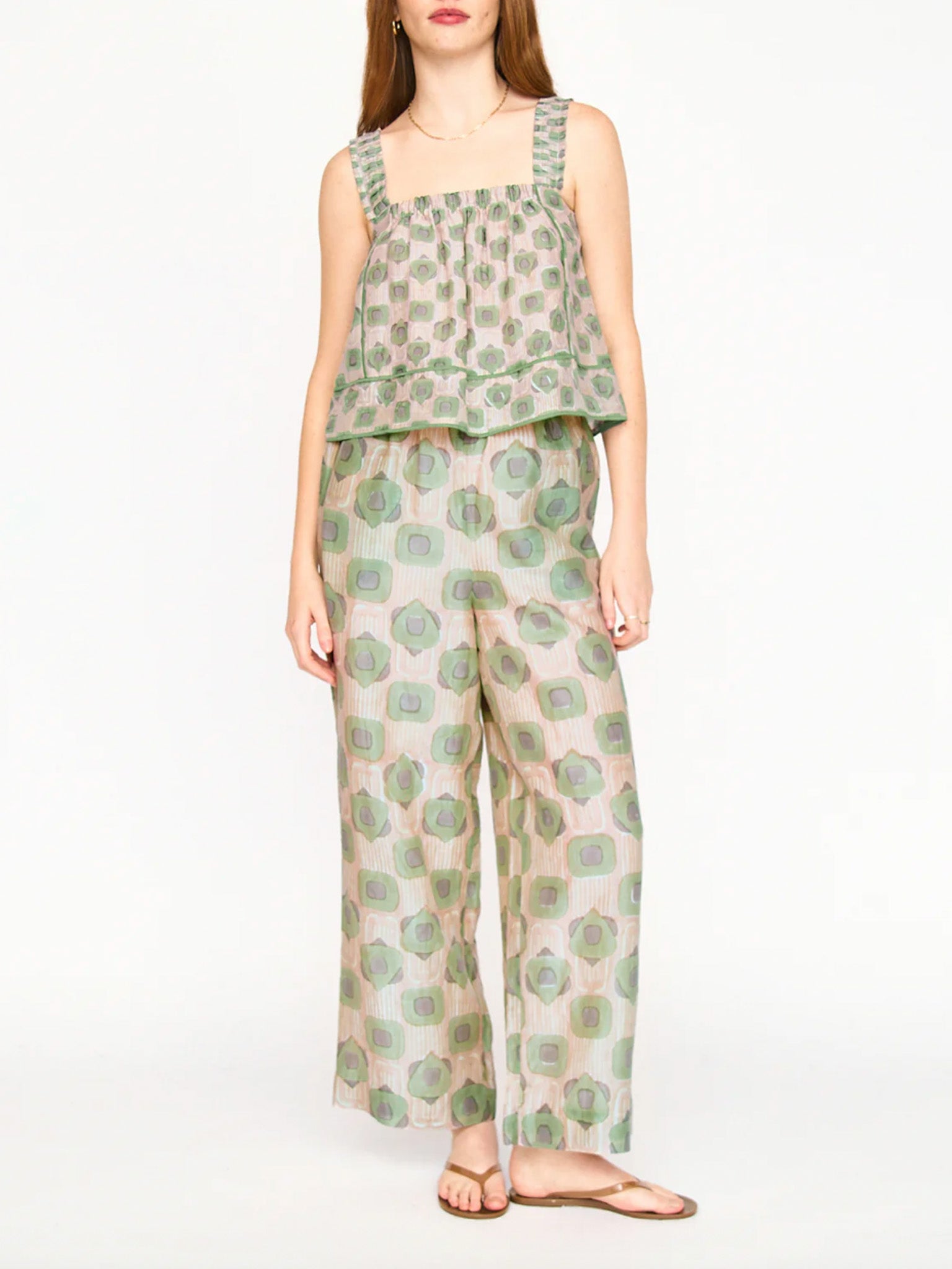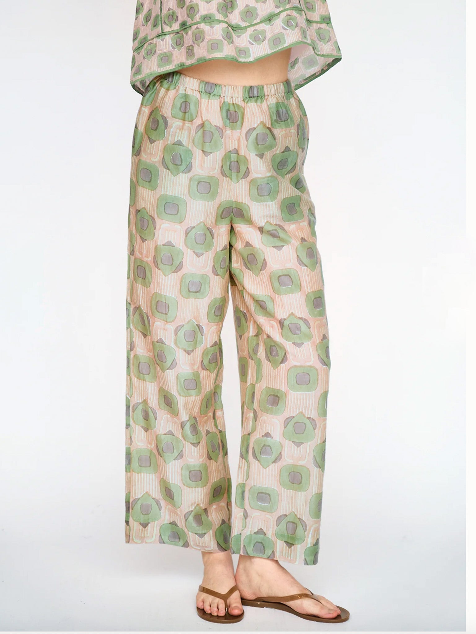 - Straight leg pant with elastic waist