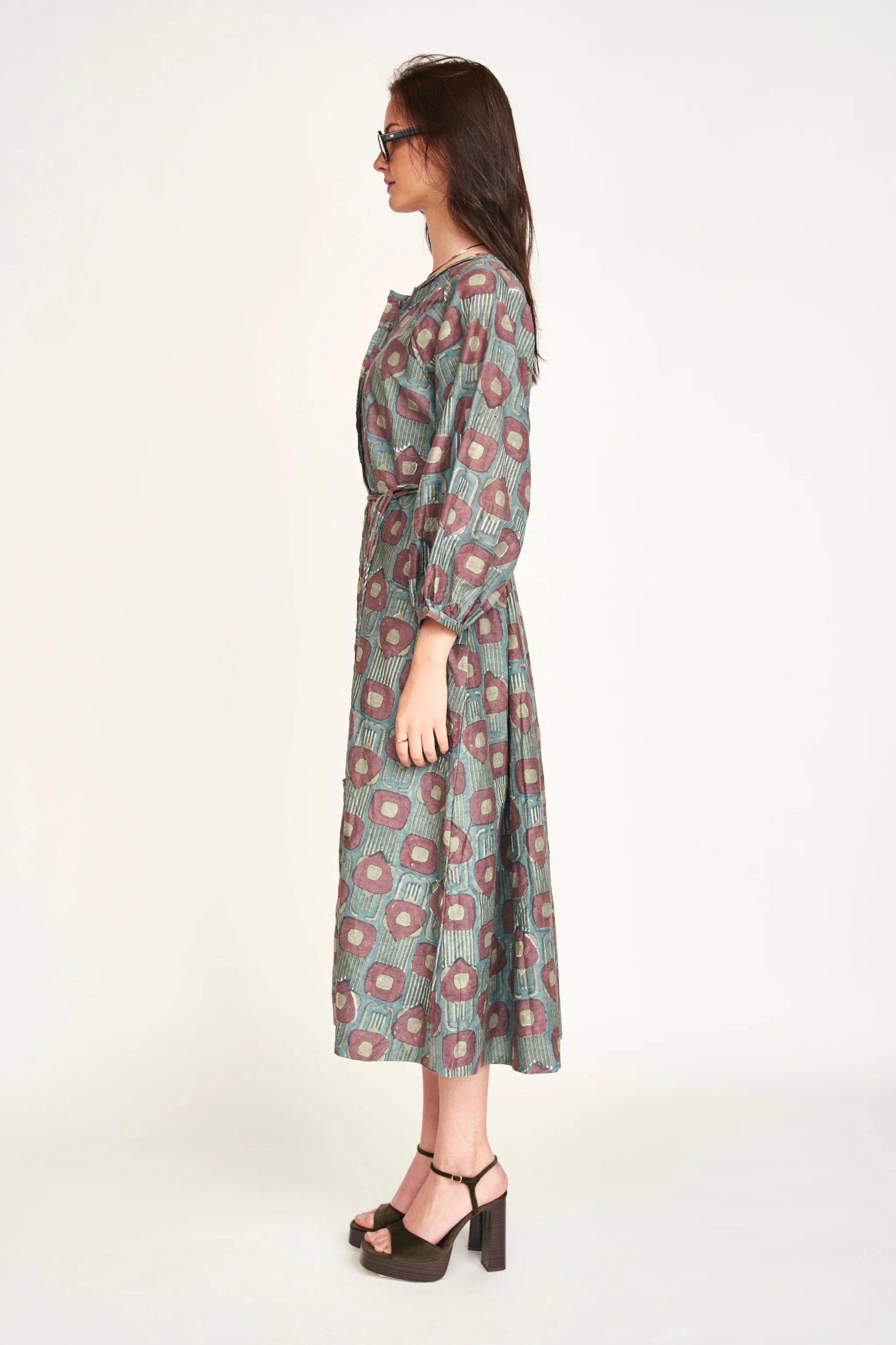- Ankle-length belted dress